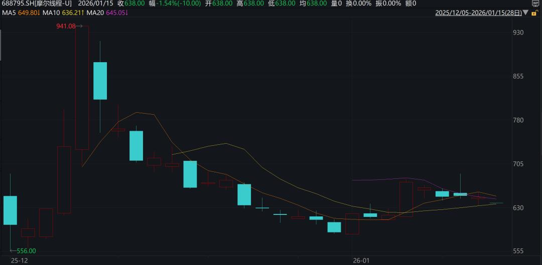 不过,进入2026年,投资者开始趋于理性。截至2026年1月14日,摩尔线程股价较最高点回调约37%。作为第三家国产GPU芯片上市公司,壁仞科技在1月2日上市首日涨幅为80%,而1月8日上市的天数智芯上市首日涨幅仅为8.44%。