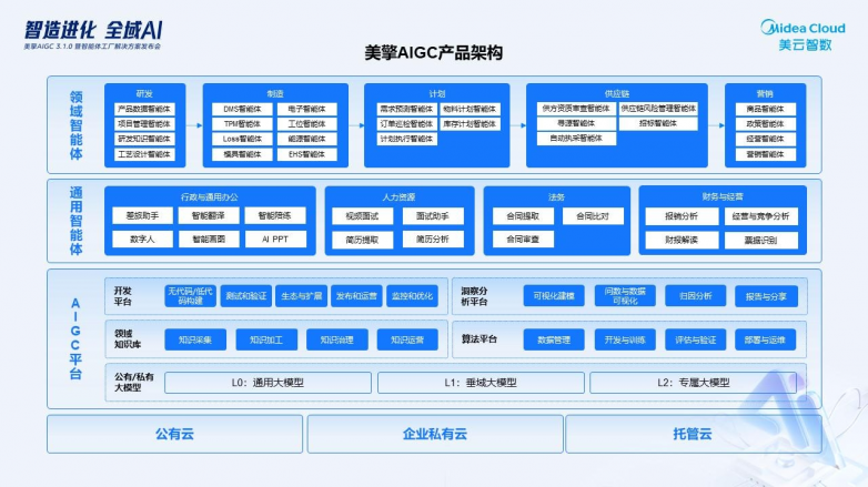 2026年1月15日,美云智数科技股份有限公司(以下简称“美云智数”)正式对外发布美擎AIGC 3.1平台及智能体工厂解决方案,标志着AI技术重塑制造业价值链进入规模化落地新阶段。美的集团副总裁兼CDO张小懿与美云智数总裁金江共同揭晓战略框架,提出“AIGC应用落地=场景×(数据+算力+算法)”公式,同时从1月19日起将推出5场垂直领域AI智能体解决方案专场直播,深度破解行业痛点。