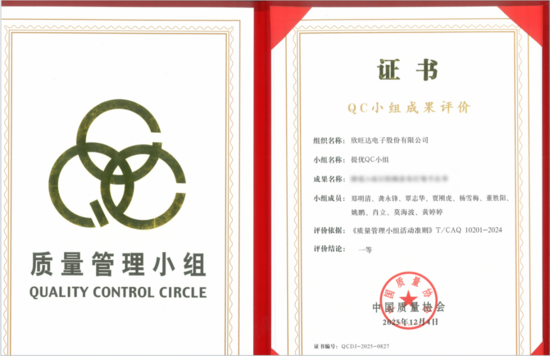 近日,中国质量协会公布年度质量管理小组(QC小组)成果等级评定结果。欣旺达提报的质量改善课题成果,从全国各行业众多优秀项目中脱颖而出,荣获QC小组成果评价一等奖