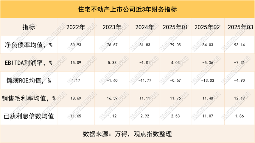 住宅不动产财务承压,债务指标波动明显。行业财务压力显著,债务水平及偿债能力波动明显。净负债率逐步回升(2022-2023年从80.93%降至76.57%,2024年回升至81.83%,2025年三季度达93.14%);已获利息倍数随盈利波动(2022年11.65,2023年降至1.12,2024年回升至2.92,2025年三季度降至1.86)。盈利水平呈下行趋势,EBITDA利润率2024年转负(-1.01%),2025年三季度为-7.31%;摊薄ROE2023年转负(-1.60%),2024年降至-11.77%,2025年三季度收窄至-4.90%;销售毛利率2024年降至11.11%,2025年三季度略有回升但仍低于2022-2023年水平。