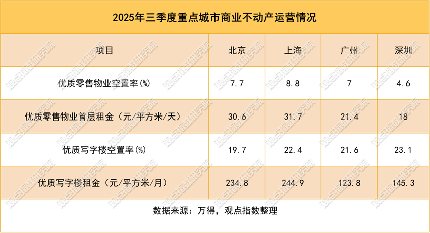 写字楼市场租金均有不同程度下降,上海虽迎来82万平方米新增供应,但金融业、TMT与消费品零售业升级搬迁带来租赁需求增长,政策创新(《关于推进商务楼宇更新提升的实施意见》)支持存量资产转型;深圳甲级写字楼业主延续“以价换量”策略,租金进一步调整。
