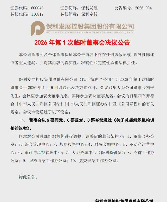 经历了两周时间内部提名与董事会成员讨论之后,就在前天,保利发展正式官宣组织调整与高管换防动作,保利发展在2026年经营思路也更加清晰明了。