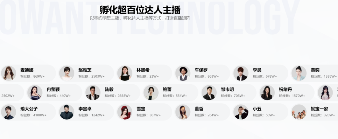 目前遥望科技已经签下了超200位明星和达人主播,其中能做到亿级GMV的超10位,千万级的也有35位以上。累计直播超20万场,合作过2.5万个品牌,成交订单超4亿单,不管是内容创作还是带货转化能力,都相当能打。