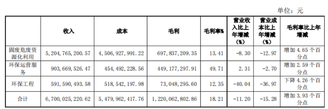此外,公司还运营有部分垃圾焚烧发电项目,以及环境修复等工程业务。