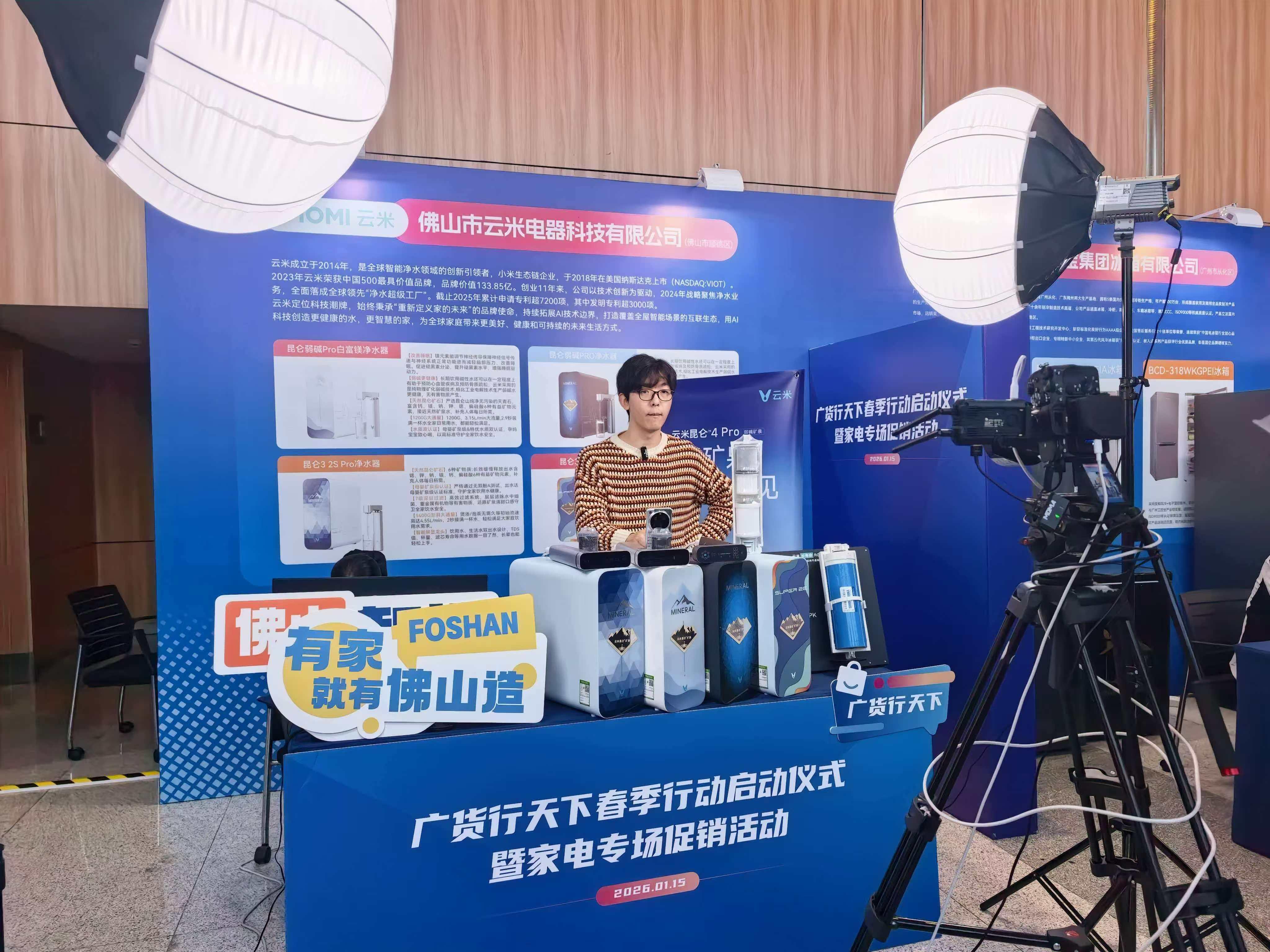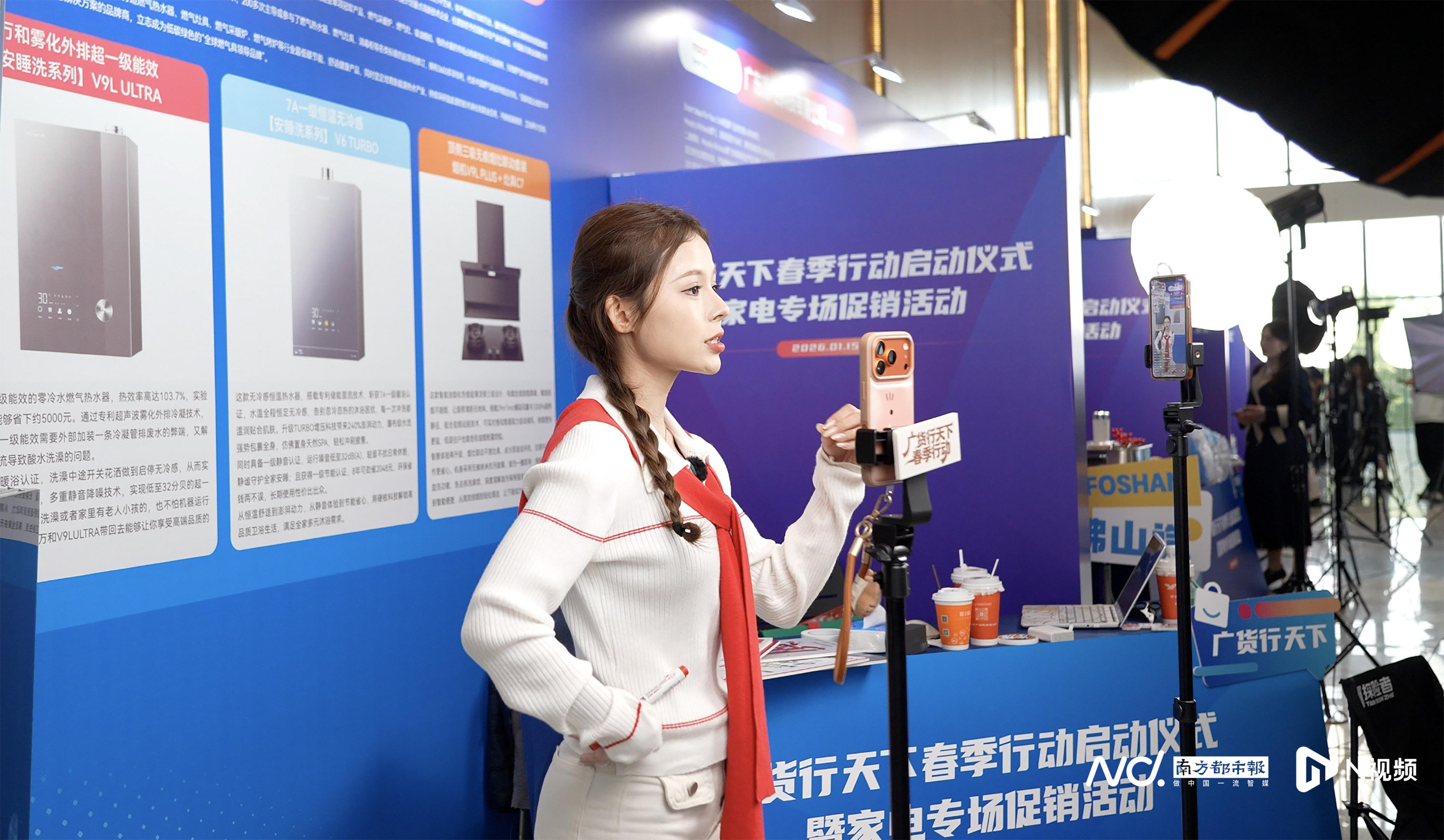 2026年1月15日,“广货行天下”春季行动启动仪式暨家电专场促销活动,在广东佛山顺德潭洲国际会展中心举行。省家电商会以及美的、格力、格兰仕、海信等30多家企业、行业商协会代表将在现场展示广东家电企业优质产品并开展直播带货,打响春季促消费“第一枪”。