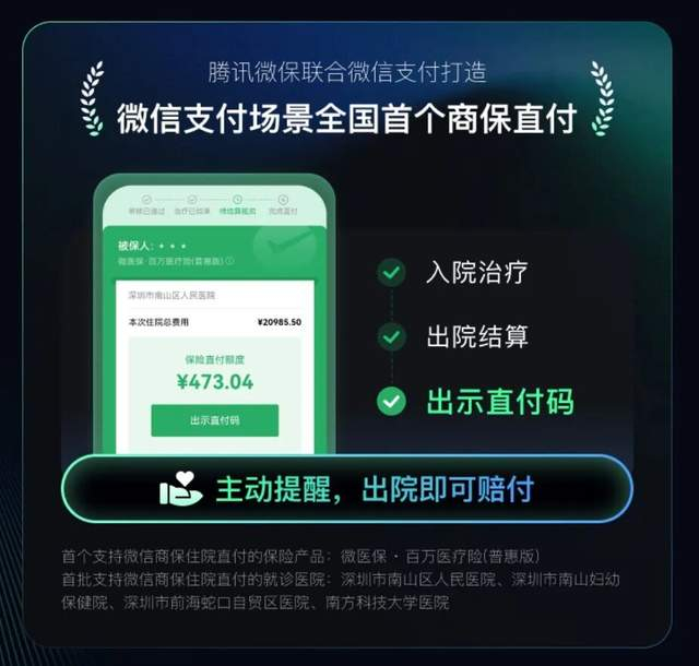 这是去年腾讯微保联合微信支付突破性地打造了全国首个微信支付场景“商保直付”快捷通道的一个生动写照。