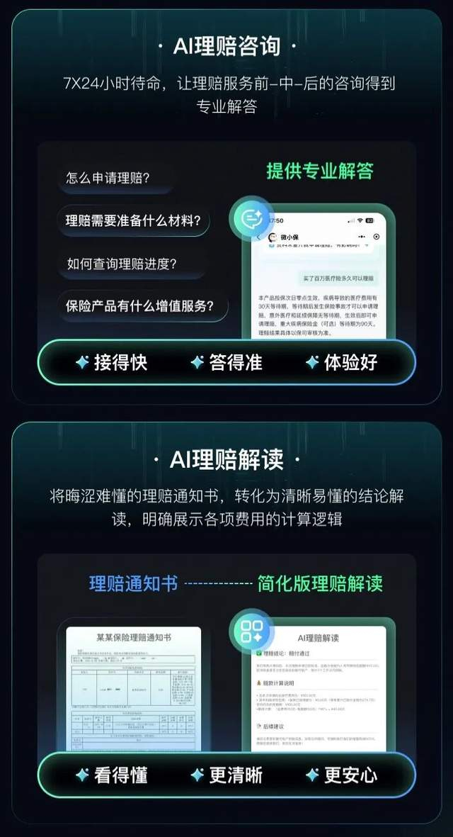 2025年,腾讯微保在这些方面的投入也尤为显著。在科技赋能层面,AI成为腾讯微保提升服务质效的核心引擎:基于自研大模型智能体平台,腾讯微保实现了AI在保险场景的规模化落地。在理赔环节,AI智能报案能够自动识别、填充医疗单据信息,实现“一键报案”;AI理赔助手提供7×24小时在线答疑,并能将专业的理赔通知书转化为通俗解读。这种“AI+人工”的分层服务体系,确保了高频服务“接得快、答得准”,复杂问题能得到人性化处理,显著提升了服务效率和用户感知。