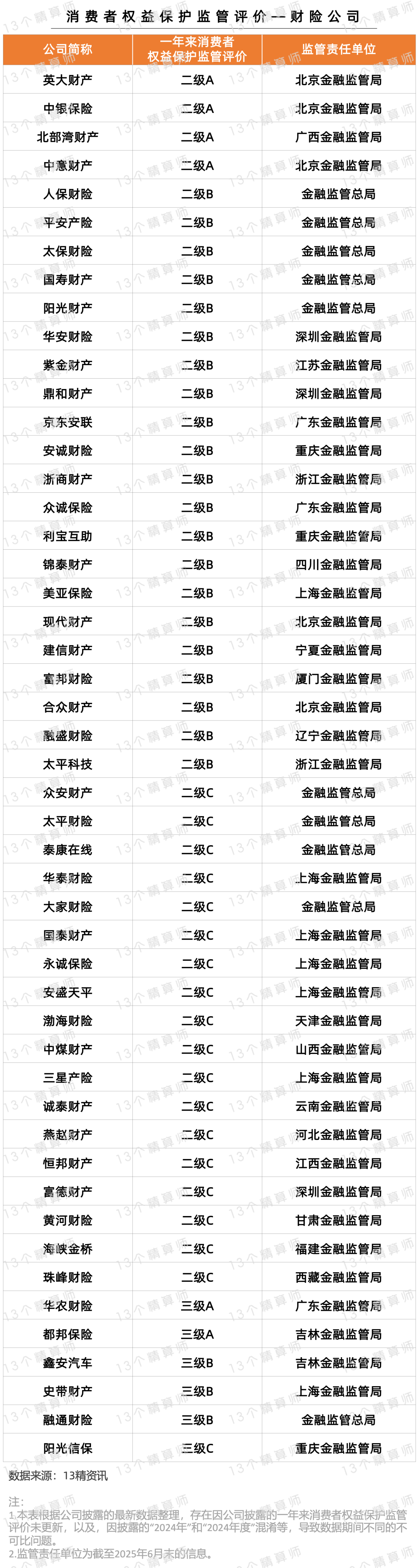 由于2025年,金融监管总局下放了112家中小险企的监管权限,因此,上图的属地监管机构,可能并非进行消保监管评价时的属地机构。