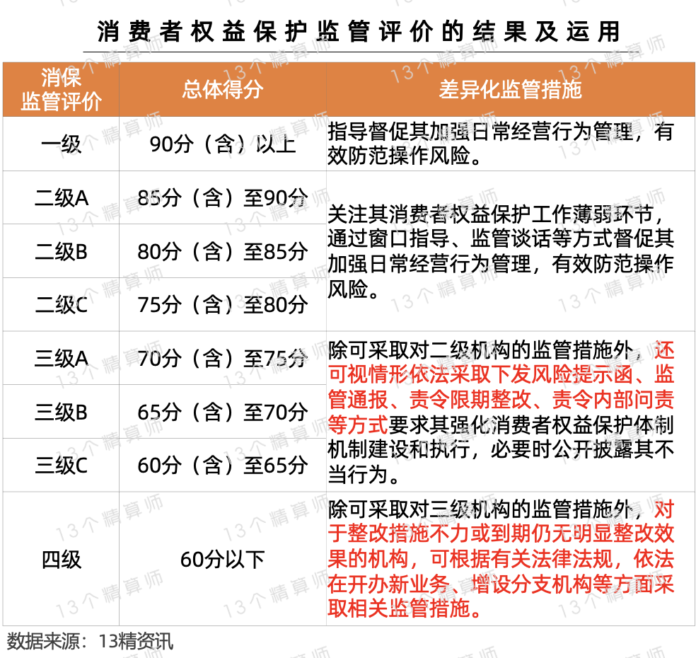 等级数字越大,表示机构消费者权益保护工作存在的问题越多,需要越高程度的监管关注。