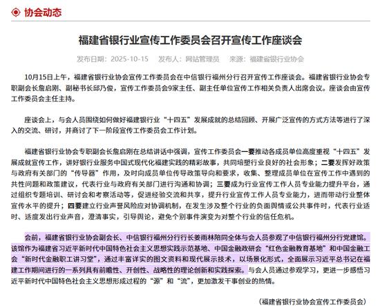 从这些公开活动记录可以看出,直到2025年10月中旬,姜雨林仍然正常履行职务,参加了福建省银行业协会宣传工作委员会在中信银行福州分行召开的宣传工作座谈会。