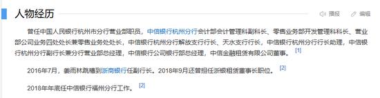 姜雨林在某信银行体系内有着丰富的任职经历。公开资料显示,他曾在某信银行与浙商银行都有任职经历。