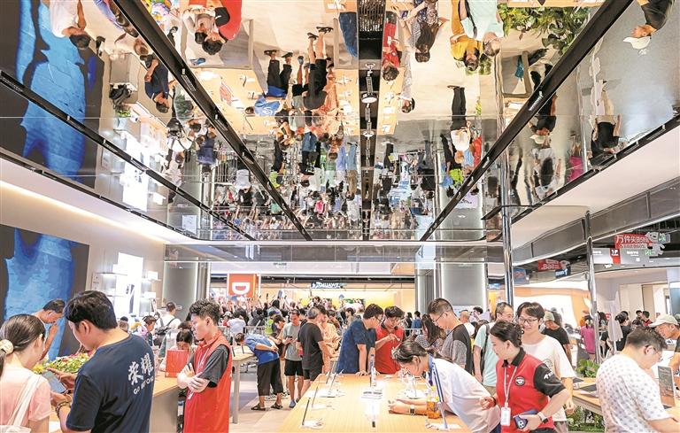 深圳京东商场华为手机、无人机等产品区人气爆棚,市民抢先体验新品,踊跃选购。深圳特区报记者何龙摄