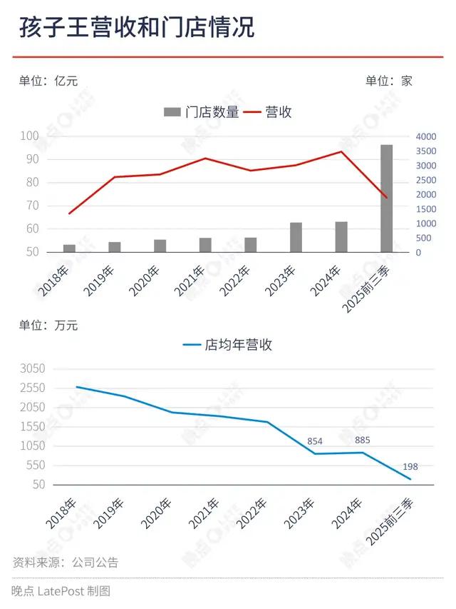 -这在账面上直接导致孩子王的店均年收入从 2018 年的近 2600 万元逐步降至 2022 年的约 1700 万元,随后砍半至 850 万元-900 万元,2025 前三季度进一步降至约 200 万元。