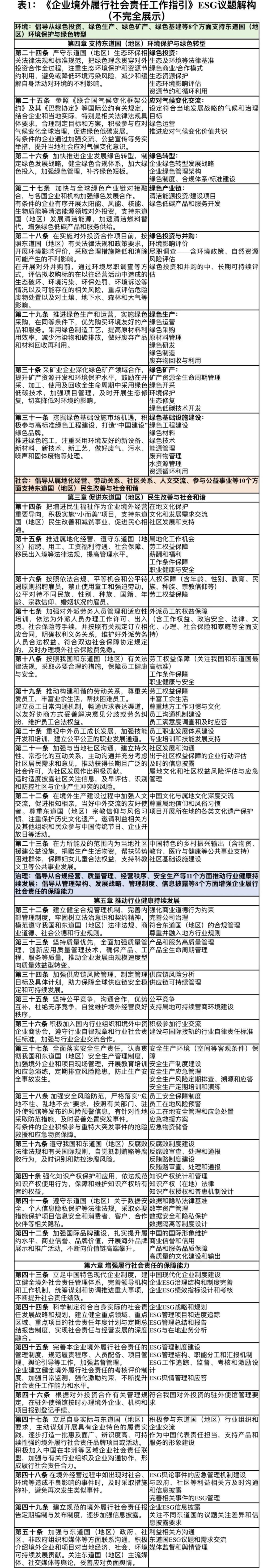 (三)落实“四大全球倡议”的《企业境外履行社会责任工作指引》ESG解构