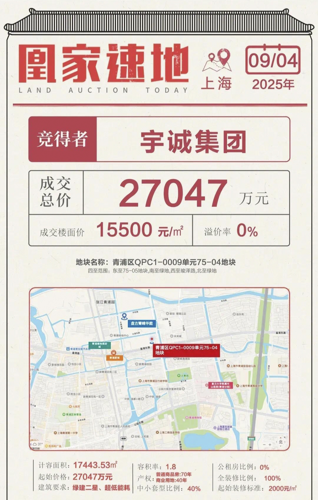 拿地近3个月,青浦区QPC1-0009单元75-04地块(即宇诚集团青浦新城项目)设计方案正式公示。