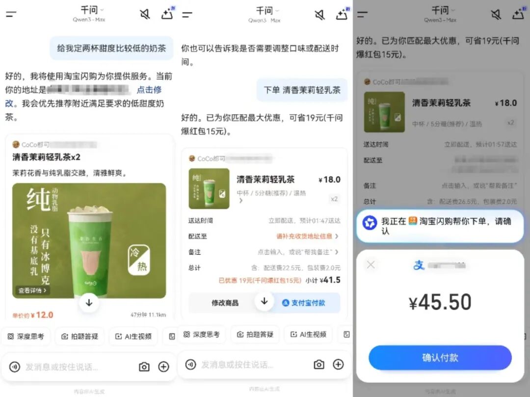 首先,千问APP可以实现AI点外卖。