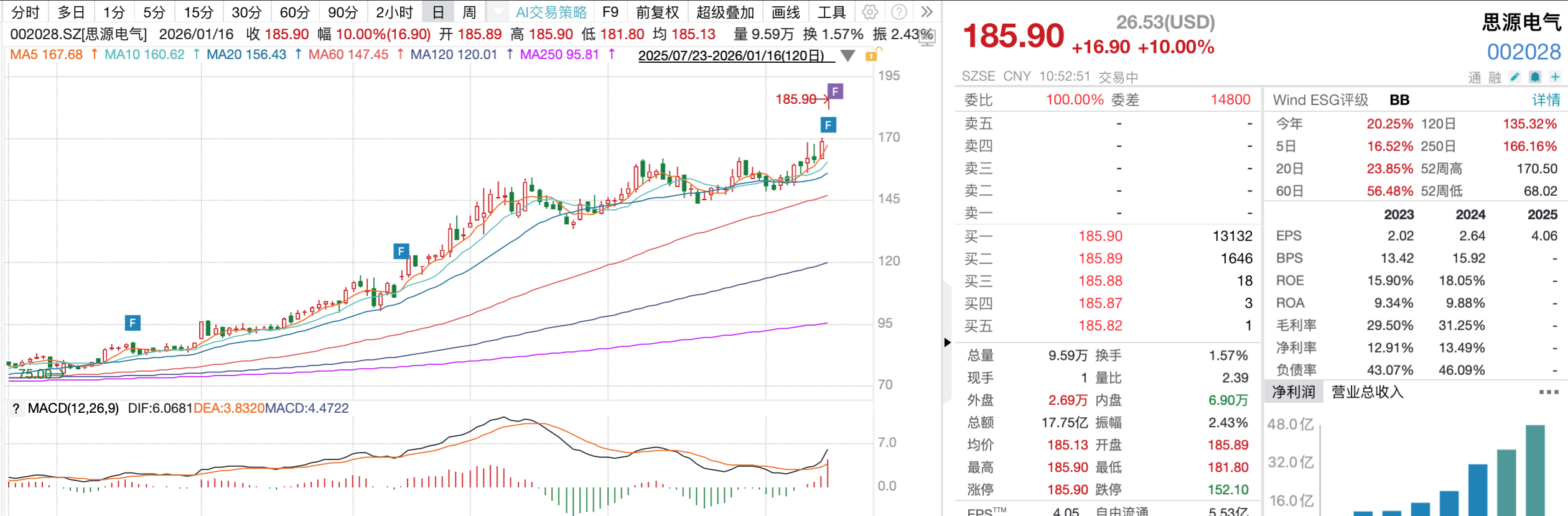 电力设备出海龙头企业之一,思源电气昨日发布2025年业绩,超市场预期,且呈现同比环比加速迹象。今日涨停。