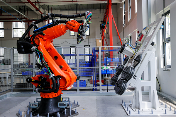 活动开始前,桥田智能创始人刘小平带领同学们参观了实验室和展厅,通过机器人手臂的实操演示,深度了解机器人末端工具的应用工位和操作工序;随后又深入组装制造车间,实地观察生产流程里的精细化管理和协同模式。