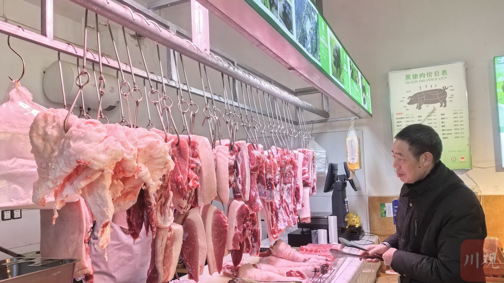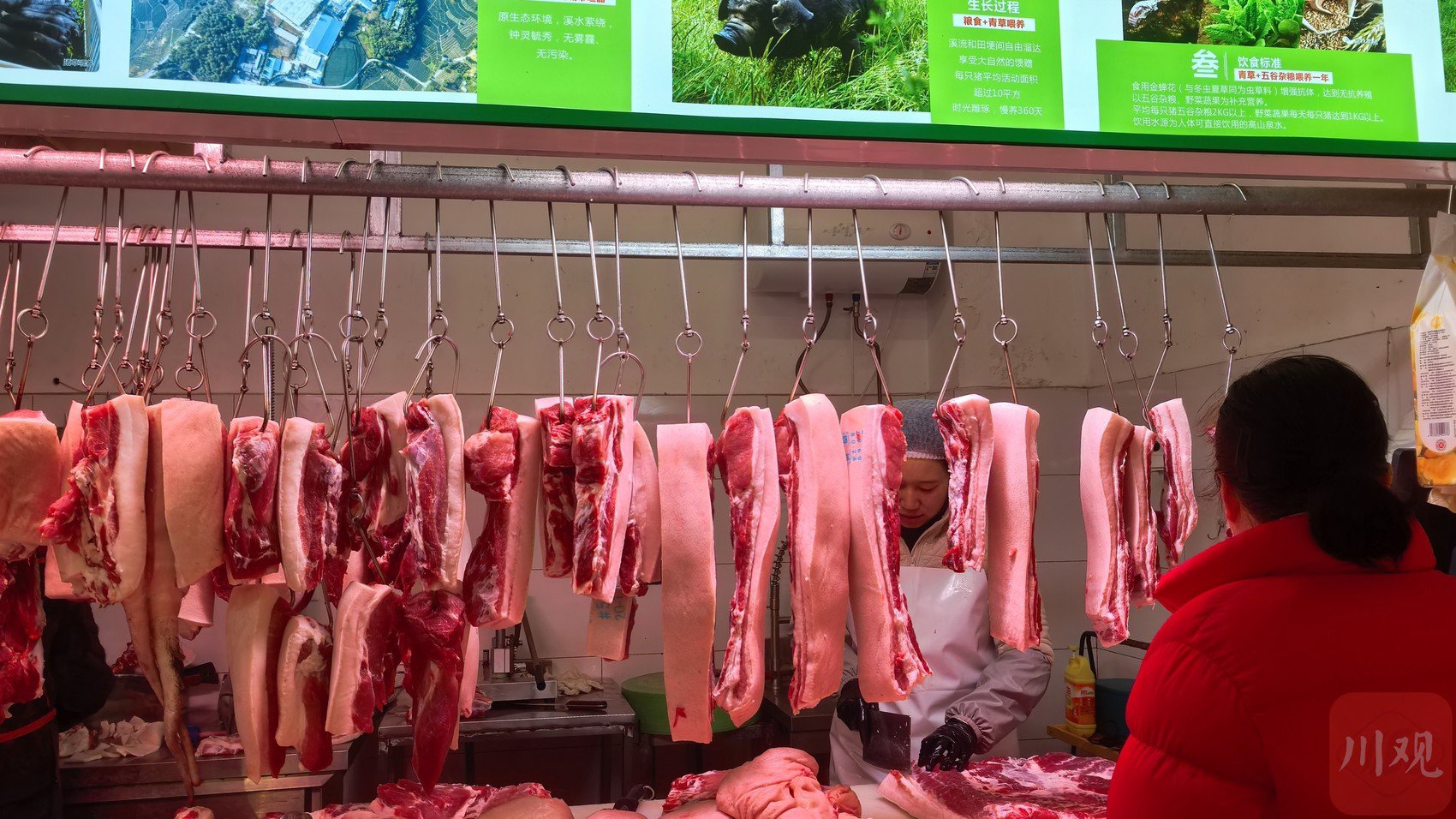 1月13日9时许,锦江区中道街“嘉林黑猪肉”生鲜店内,不时有顾客进店选购。前/后腿肉39.8元/500g、精品五花肉42.8元/500g、精瘦肉卖50元/500g……这处20多平米的门店专卖天府黑猪肉。“老顾客一般会提前一天预约。”店主蓝静笑道,淡季每天卖1头,眼下是旺季,每天能卖2头黑猪。