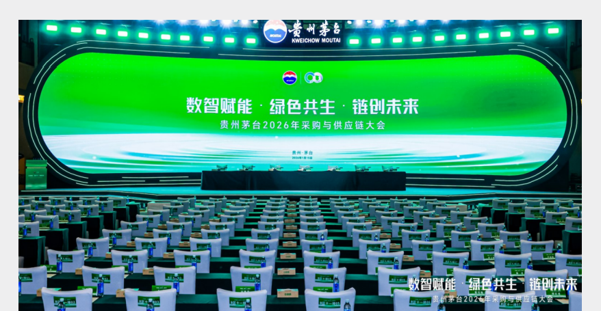 1月15日,以“数智赋能·绿色共生·链创未来”为主题的贵州茅台2026年度采购与供应链大会在茅台镇召开。这场大会不仅是一次产业实践的集中呈现,更是一场对价值共同体的深情告白,系统铺展了茅台“绿色智慧供应链”的实践成果。