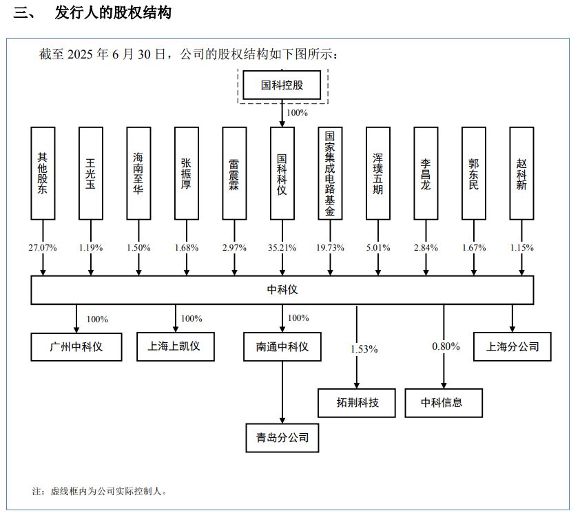 公司起源于1958 年设立的中国科学院沈阳分院下属科学仪器厂,历经数十年演变,如今国科科仪持有公司35.21%股份,为控股股东,国科控股为实际控制人。