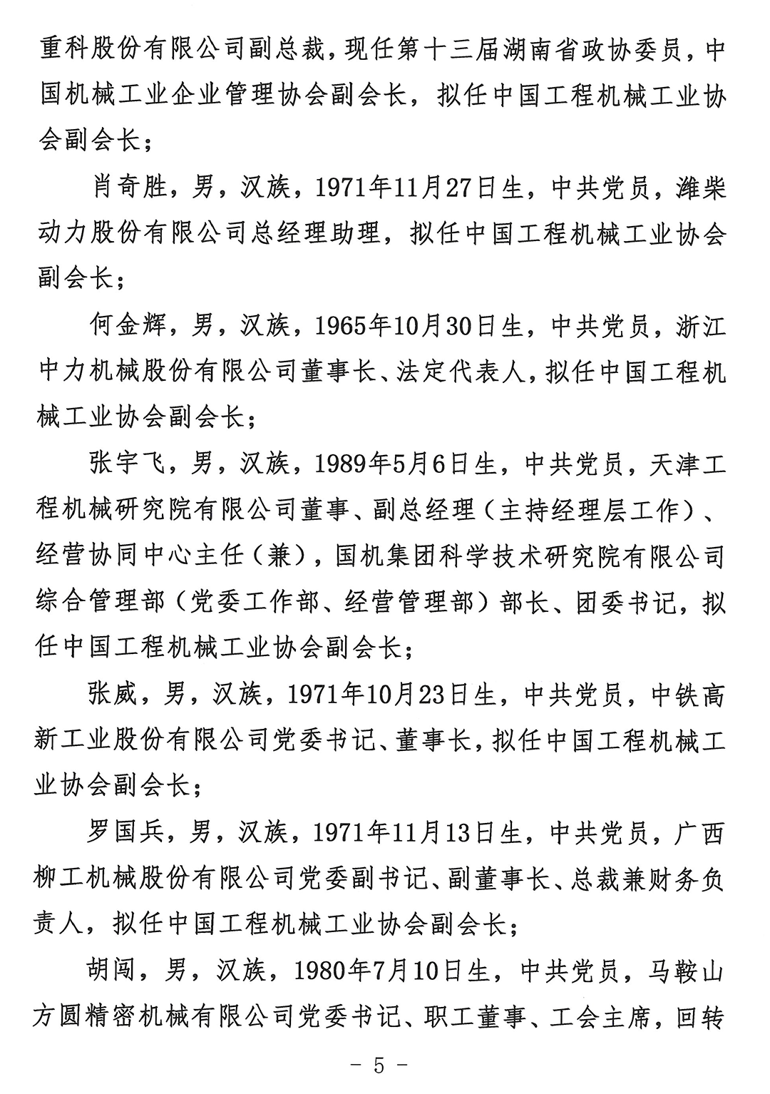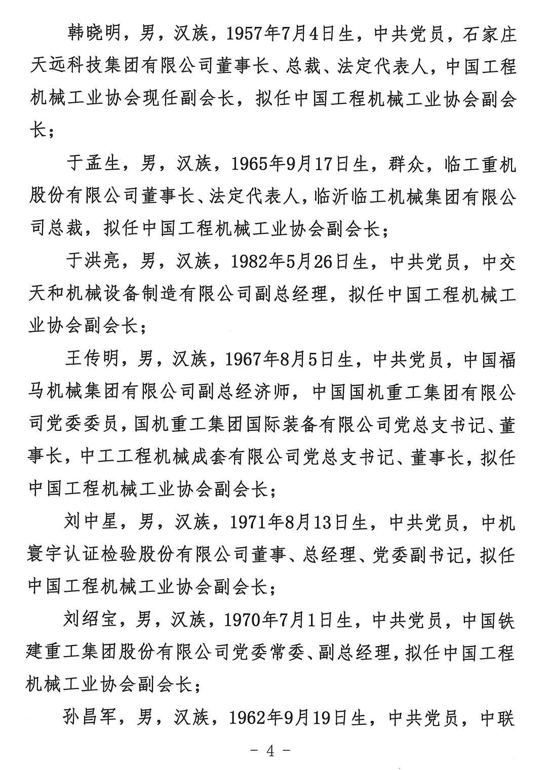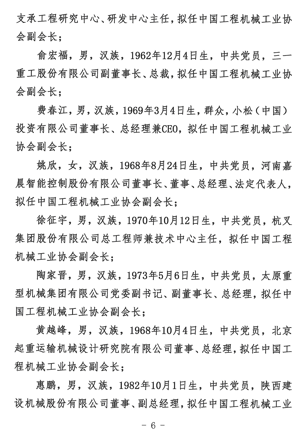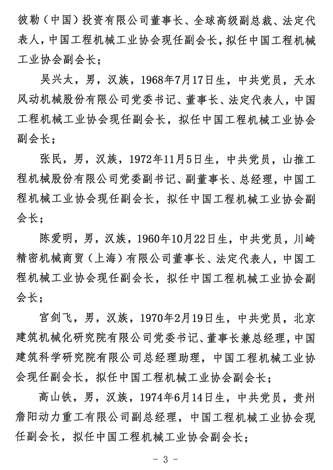 关于中国工程机械工业协会第七届理事会负责人人选的公示