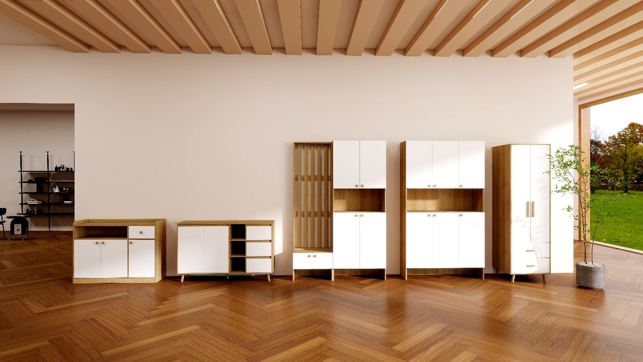2024年,鲁丽集团直击消费者关切的全屋定制“价格高、环保差、周期长”三大痛点,创新性提出“标准化家具”这一解决方案。标准化家具产品采用自产的ENF级零醛添加欧松板,执行全球最高环保标准,让绿色、健康触手可及。此外,标准化家具的售价仅为传统全屋定制的一半,更在材料综合利用率、生产周期和交付效率等方面实现翻倍提升。