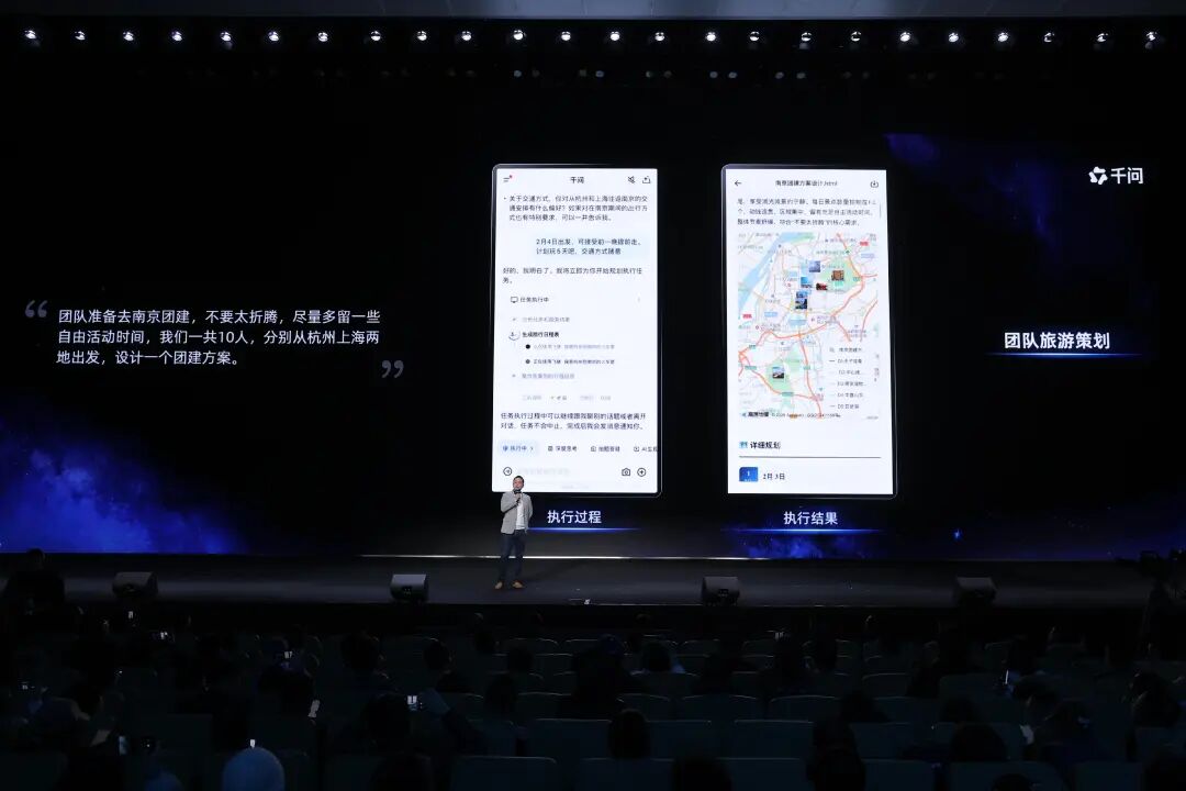 “我们的独特优势在于‘Qwen最强模型’与‘阿里最丰富生态’的结合。”吴嘉总结,阿里从底层的自研芯片、云计算、基座模型,到电商、本地生活、文娱、健康等丰富场景,再到支付与履约,构建起了一个几乎涵盖消费者生活方方面面的服务体系。