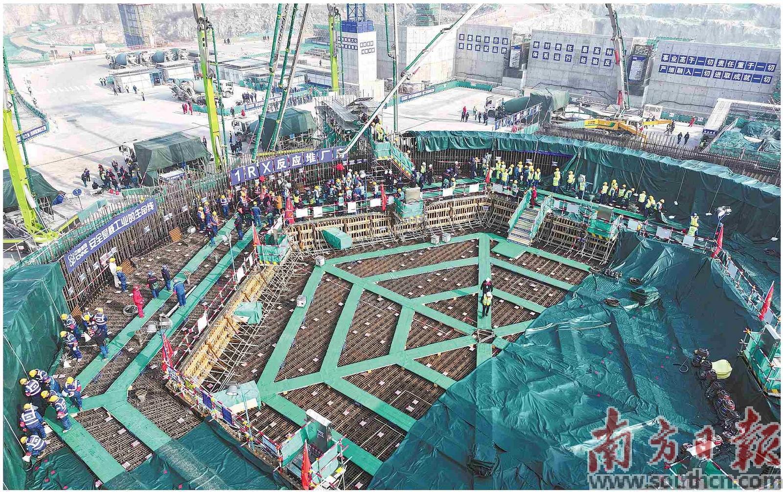 1月16日,工人在1号机组核岛浇筑混凝土。新华社发