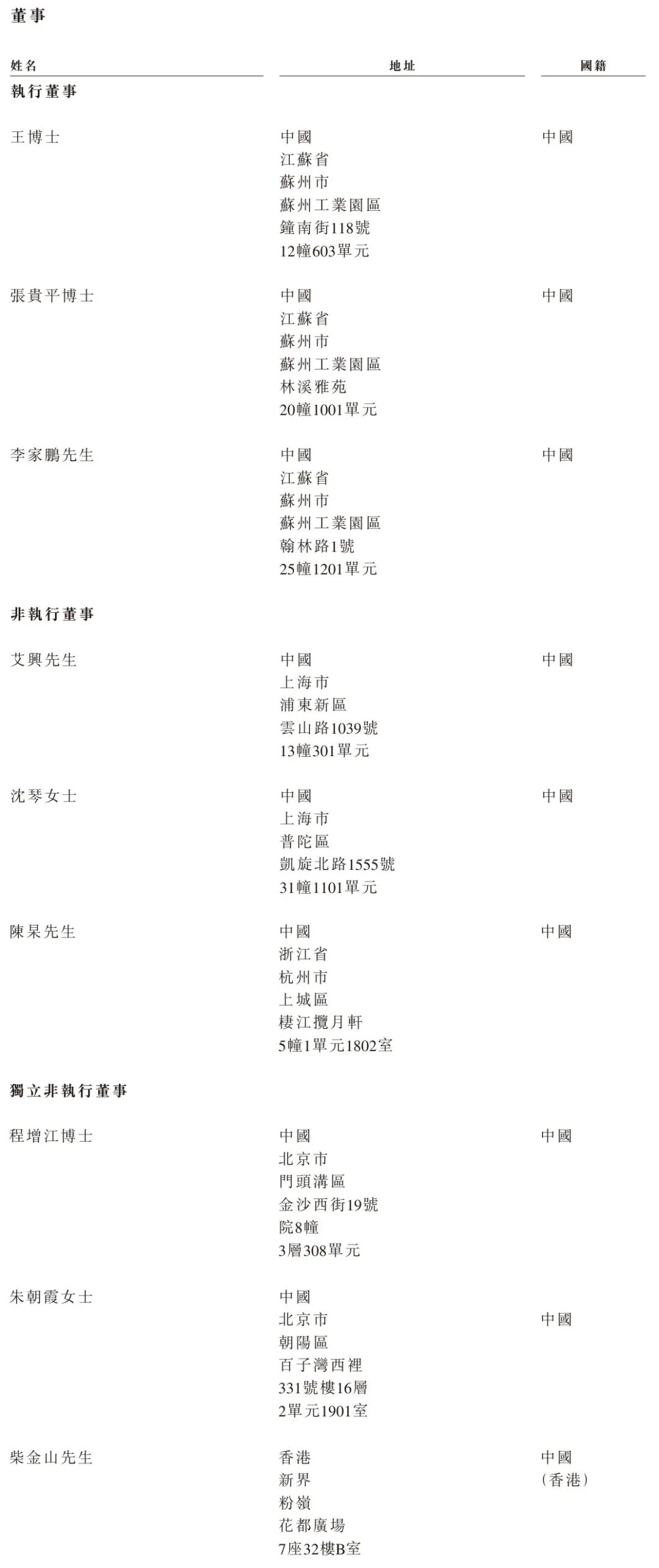 勤浩医药执行董事分别为王奎锋博士、张贵平博士、李家鹏;非执行董事分别为艾兴、沈琴女士、陈杲;独立非执行董事分别为程增江博士、朱朝霞女士、柴金山。