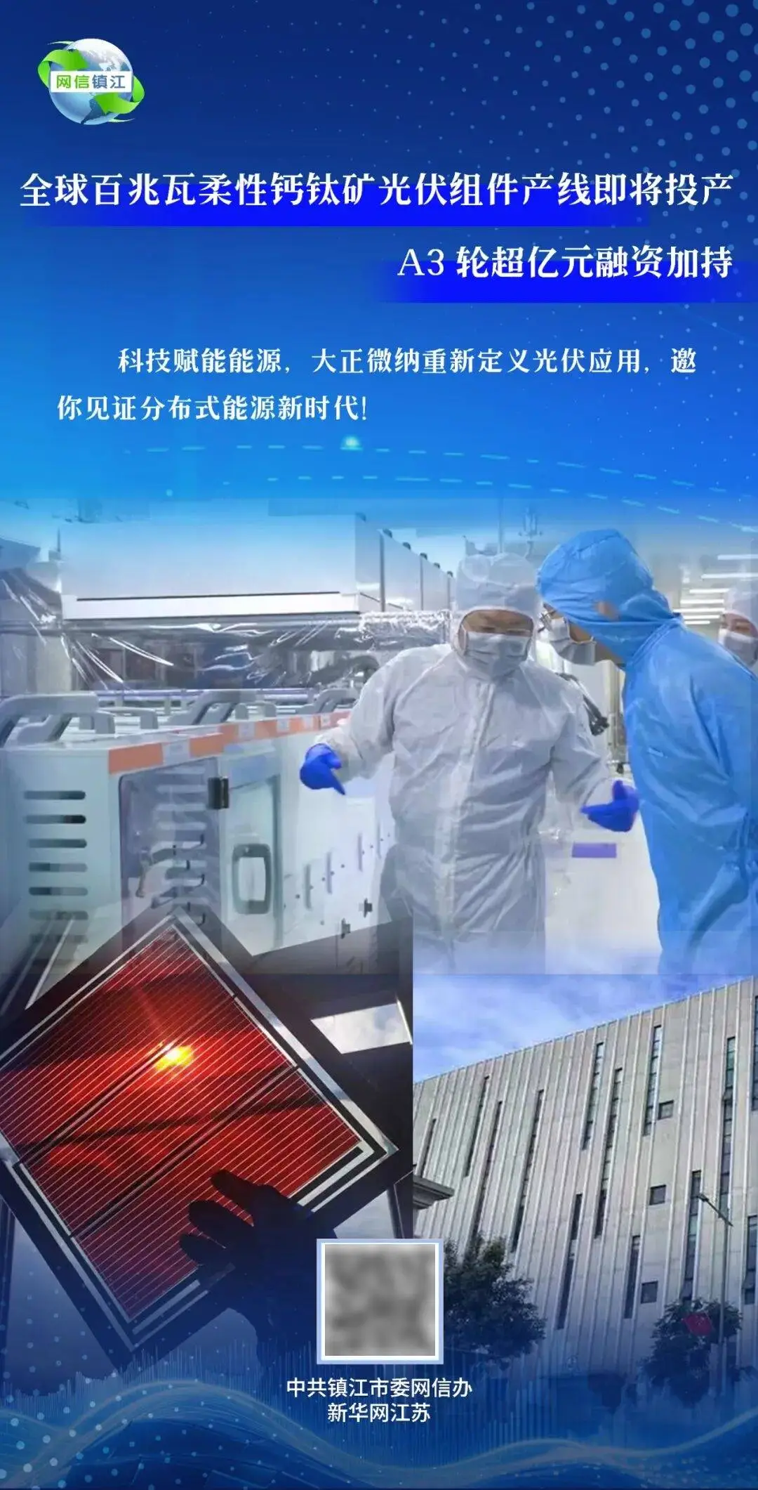 从麻省理工的实验室到世界银行的报告厅,从清华园的图书馆到哈佛的讲堂,马晨的求学与职业轨迹曾沿着知识精英的典型路径延伸。2018年,这位拥有清华、麻省理工、哈佛三所顶尖学府背景的镇江学子,却毅然放弃了世界银行总部、清控资管(北美)创投基金等“金饭碗”工作,带着清华同窗李鑫教授的柔性钙钛矿太阳能电池技术回到家乡,在镇江高新区共同创办了大正(江苏)微纳科技有限公司(以下简称“大正微纳”)。这个被业界誉为“第三代光伏”的前沿技术,就这样在“京口三山”的见证下扎下了根。