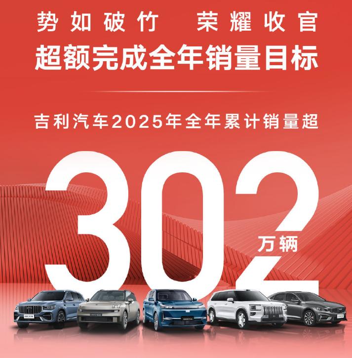 其以全年302万台的销量收官,相比于24年,销量增幅39%,超额完成了300万年销量目标,是竞争激烈的25年最成功的一家大型汽车集团。