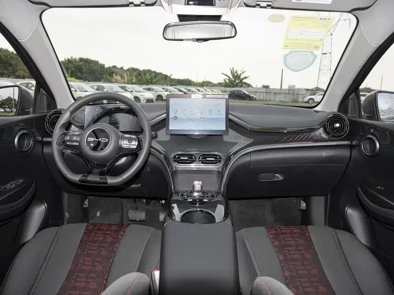 比亚迪e2的内饰设计简洁时尚,中控台配备了一块10.1英寸的触控屏,支持多媒体系统、导航、电话、空调等语音识别控制功能,为驾驶者带来便捷的操作体验。方向盘采用塑料材质,具备手动上下调节功能,满足不同身高的驾驶者需求。座椅方面,采用织物材质,主驾驶座椅提供前后调节、靠背调节及高低调节(2向),副驾驶座椅则具备前后调节和靠背调节功能,后排座椅支持整体放倒,提供灵活的乘坐空间。此外,车内还配备了USB接口,方便乘客连接设备充电。
