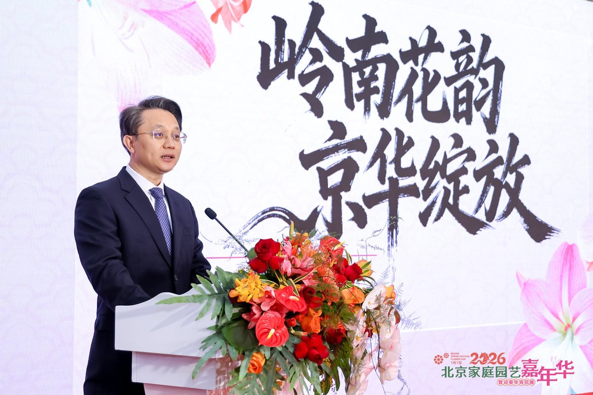 1月18日,2026北京家庭园艺嘉年华暨迎春年宵花展在北京花卉交易中心启幕,东莞以朱顶红、蝴蝶兰为核心的岭南名花组团亮相,副市长陈庆松出席开幕式并作城市推介,借花事盛会架起南北交流桥梁。