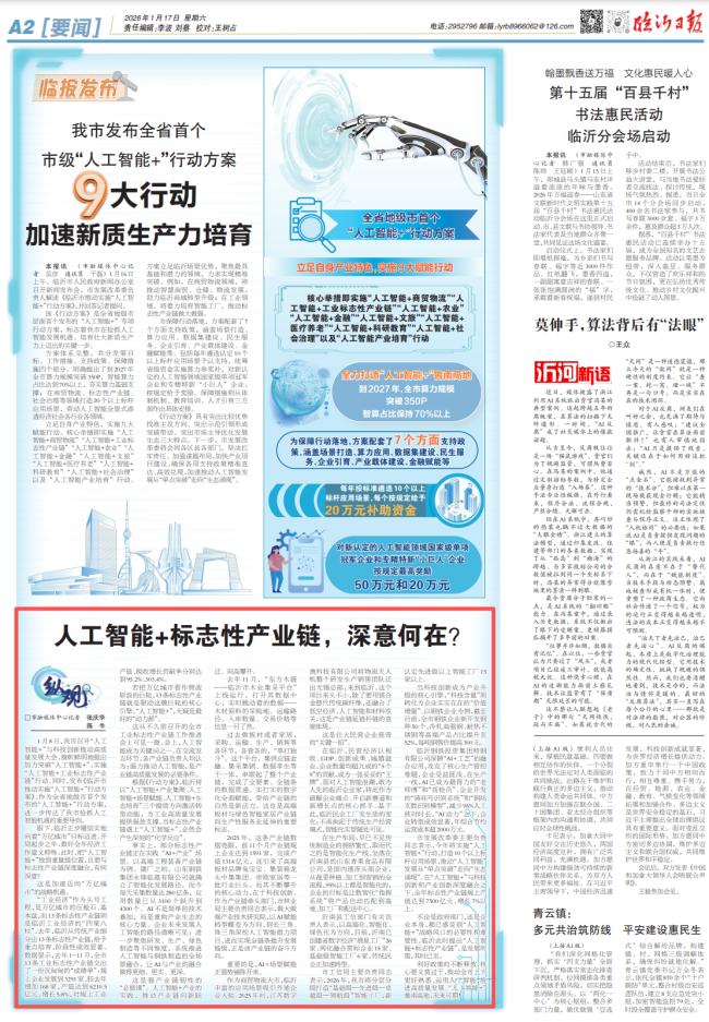 眼下,临沂正步履坚实地向着“万亿城市”目标迈进。开局起步之年,做好全年经济工作意义特殊。此时,把人工智能+放到重量级位置,且要与标志性产业链深度融合,有何深意?