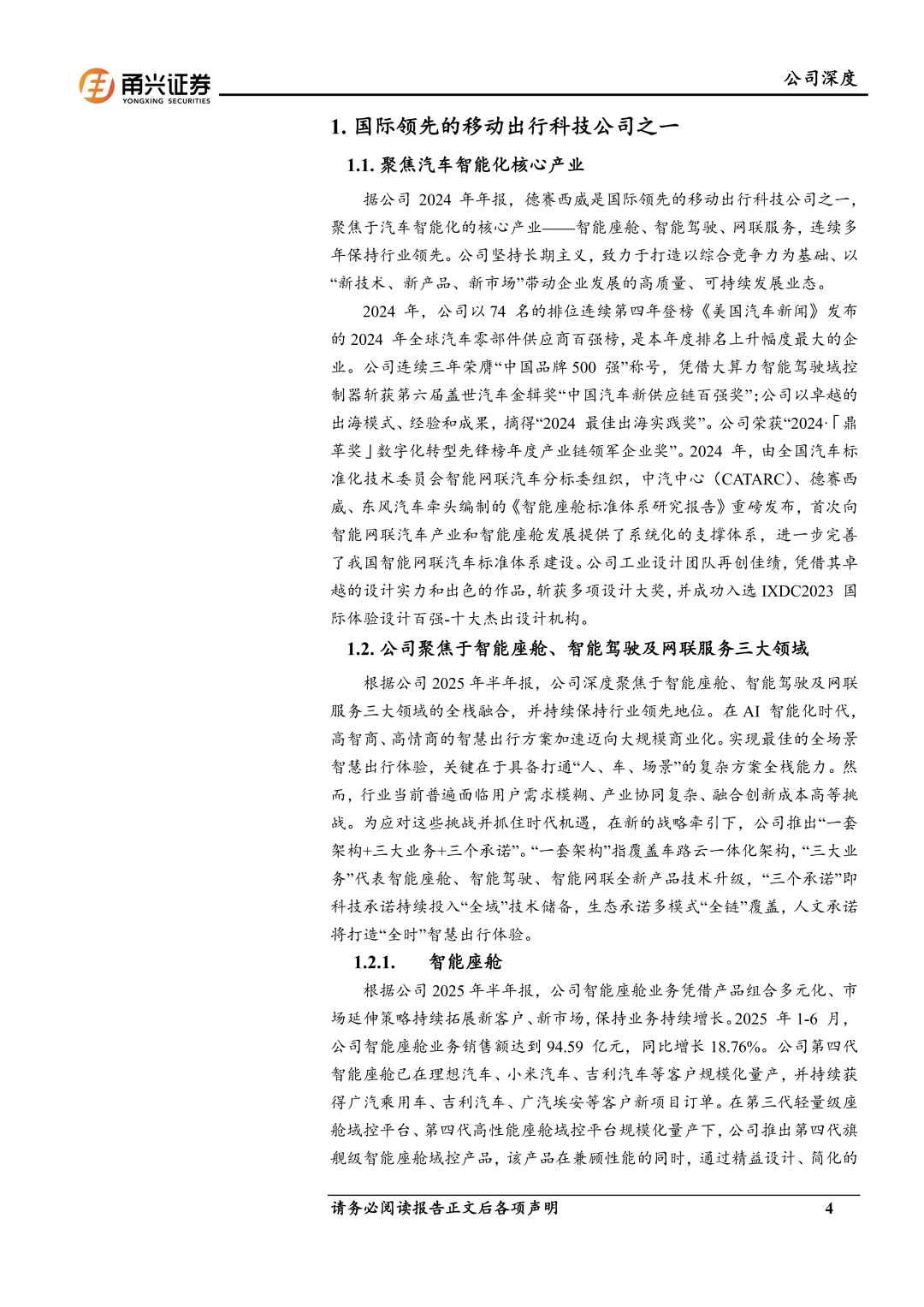 【JH-11024】德赛西威:智驾行业龙头,充分受益于汽车智能化发展