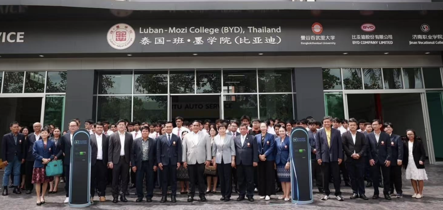 立足济南、服务全国、辐射海外,学院的服务半径不断拓展。依托“重汽全球培训中心”,每年为 150 余名重汽非洲等海外生产基地的本地工程师提供专项培训,助力企业输出技术标准与服务体系;与比亚迪联合在泰国共建“新能源汽车产教融合基地”,为当地中资企业培训技能人才 1800 余人,成为职教出海的亮眼名片。
