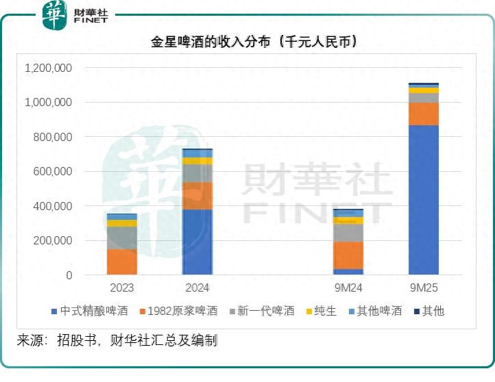 财务数据印证了这一战略的成功。招股书显示,2025年前三季度,中式精酿啤酒贡献了金星啤酒78.10%的收入,对应营收约8.67亿元,这一规模已远超2024年金星啤酒公司全年7.3亿元的营收总额,而2024年同期中式精酿的收入占比仅为9.35%,对应营收约3,563.6万元。