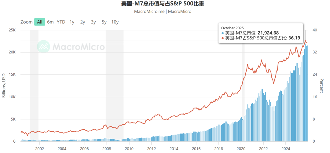 市值最高的 7 大科技巨头(M7)股价变化图
