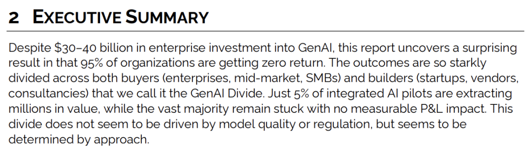 去年 7 月,MIT 泼了一盆冷水,称企业砸下的数百亿美金,只有 5%的项目能跑通。