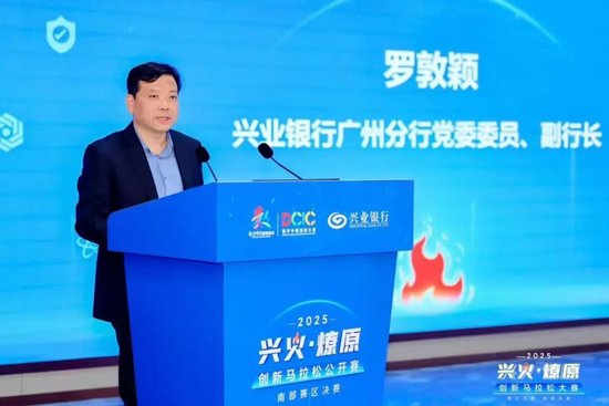 决赛现场,兴业银行广州分行党委委员、副行长罗敦颖代表赛区组委会致开场欢迎辞,作为深耕粤港澳大湾区的重要金融机构,兴业银行广州分行始终将“创新”视为立身之本和发展之魂,为此,我们积极承办此次南部赛区选拔赛,并持续投入资源,希望通过“兴火·燎原”这个平台,能够发现真价值、解决真问题、促成真合作。我们将依托兴业银行集团的场景、技术、资金与市场网络,为具备潜力的项目提供全链条支持,切实扮演好“创新合伙人”的角色,让智慧的星火,真正形成赋能百业、服务社会的燎原之势。