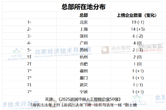 北京以19家上榜企业领先,其中包括寒武纪、月之暗面和云知声等知名企业;上海有14家上榜企业,比去年增加5家,以沐曦、商汤为代表;深圳上榜6家,云天励飞、奥比中光和晶泰科技等企业榜上有名;广州有4家上榜企业,以小马智行、文远知行和云从科技为代表