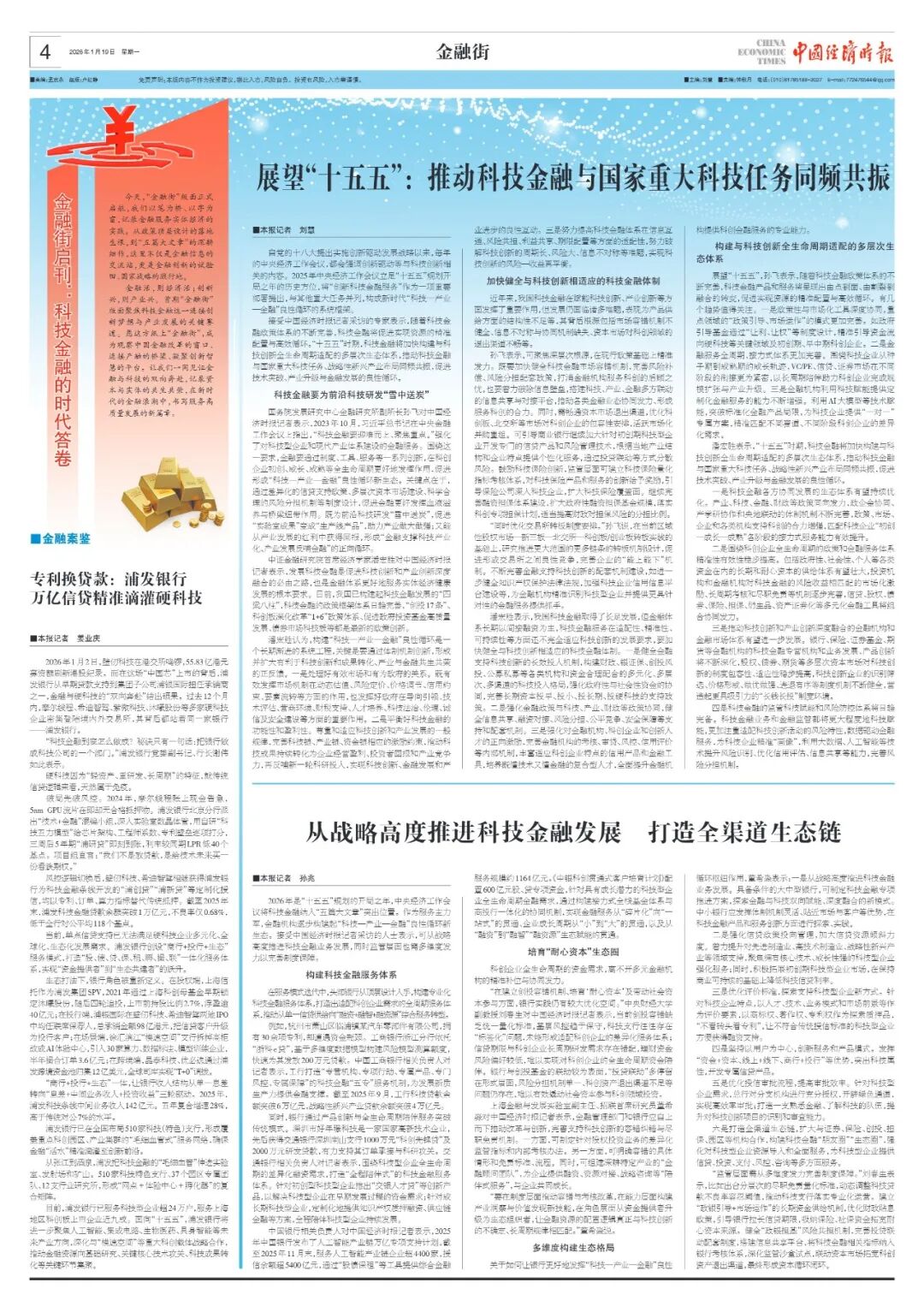 金融活,则经济活;创新兴,则产业兴。首期“金融街”版面聚焦科技金融这一连接创新梦想与产业发展的关键赛道。愿这方纸上“金融街”,成为观察中国金融改革的窗口、连接产融的桥梁、凝聚创新智慧的平台。让我们一同见证金融与科技的双向奔赴,记录资本与实体的共生共荣,在新时代的金融浪潮中,书写服务高质量发展的新篇章。