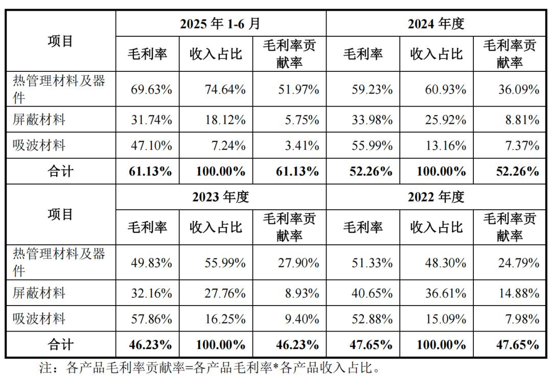 反倒是鸿富诚起家的产品屏蔽材料,受市场竞争及消费电子行业客户降价要求,相关产品价格有所下降,导致毛利率有所下行,2025年上半年为31.74%,不足同期热管理材料及器件毛利率的一半。