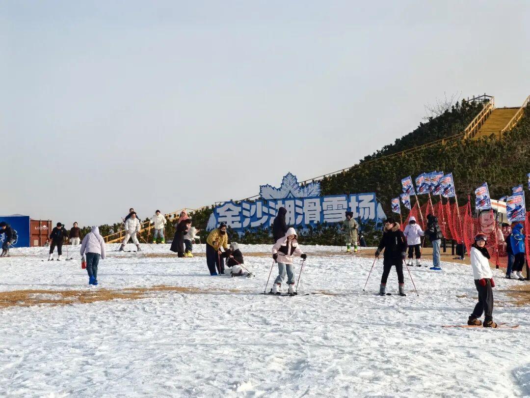 冬日的阳光斜照在阜宁金沙湖滑雪场的雪道上,泛起细碎的银光。大三学生王俊豪与同伴从坡顶俯冲而下,雪板划过处,溅起轻盈的雪沫。不远处,滑冰场上的欢笑与温泉池中袅袅的热气交织,勾勒出一幅“冰火相融”的活力画卷。
