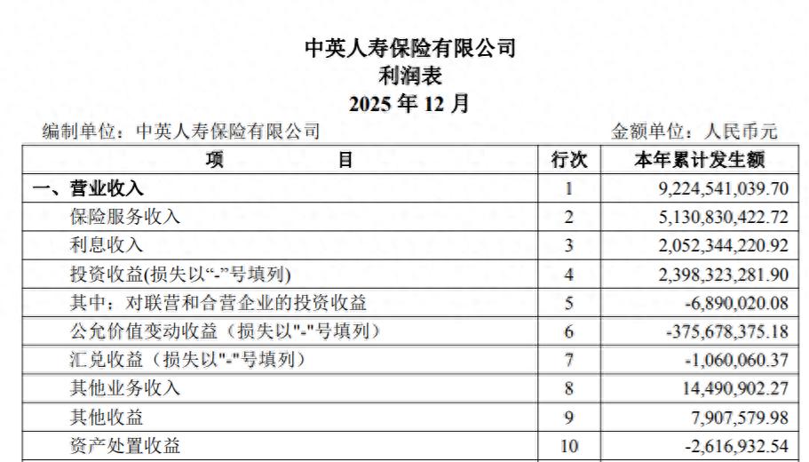 其中,中英人寿未经审计的2025年财务报表,成为保险业首份曝光的年度业绩,甚至早于上市保险公司的业绩快报。