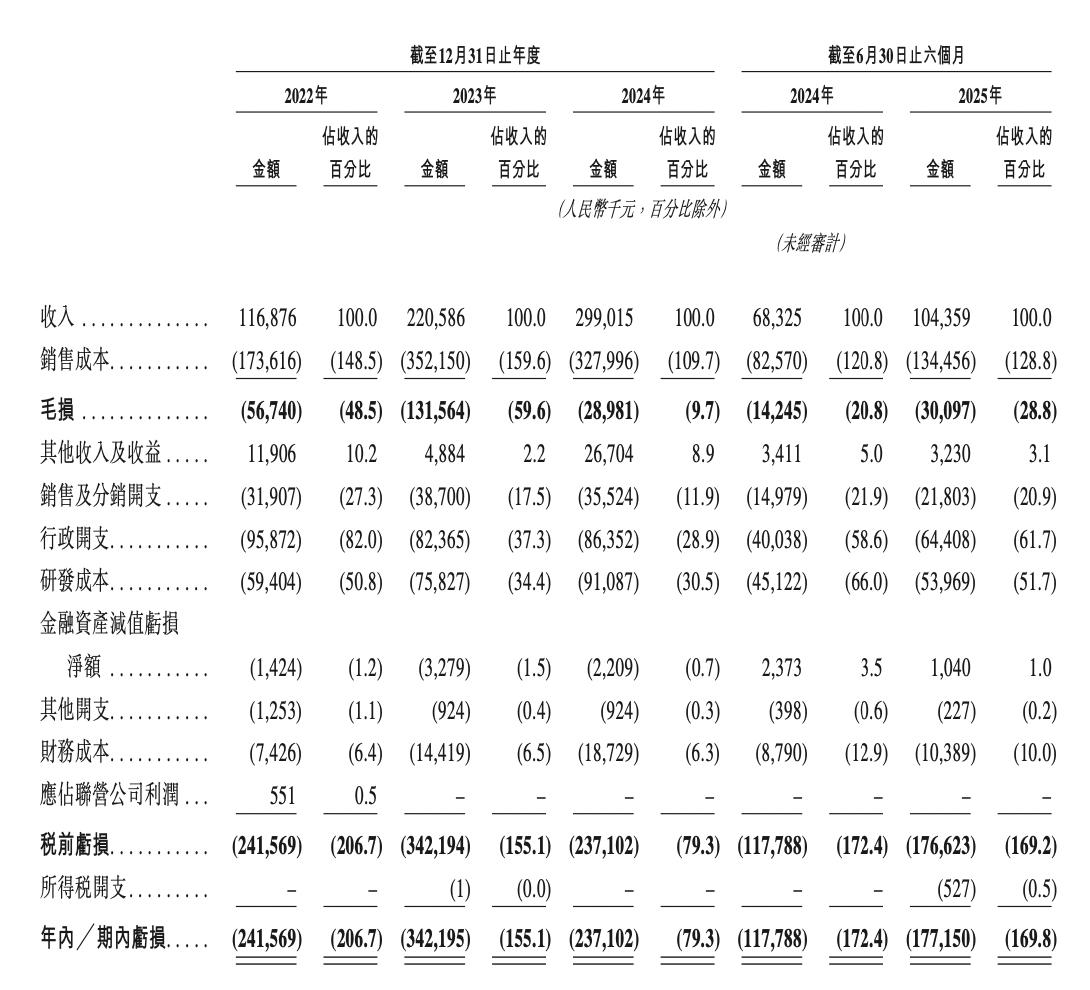 2025上半年,公司实现收入为1.04亿元,同比增长52.74%;期内亏损为1.77亿元,而上年同期亏损为1.18亿元。
