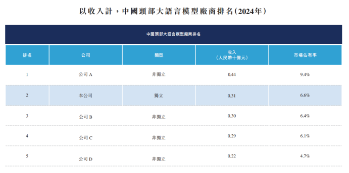 图3 中国大语言模型市场格局信息来源:智谱港股招股书
