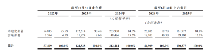 云端部署则面向软件应用服务商、智能硬件厂商及中小企业,通过API接口接入通用大语言模型能力,适合轻量化部署和快速使用,具有规模化扩张优势,2025年上半年,这一模式实现营业收入0.29亿元,占总收入比例约为15%,