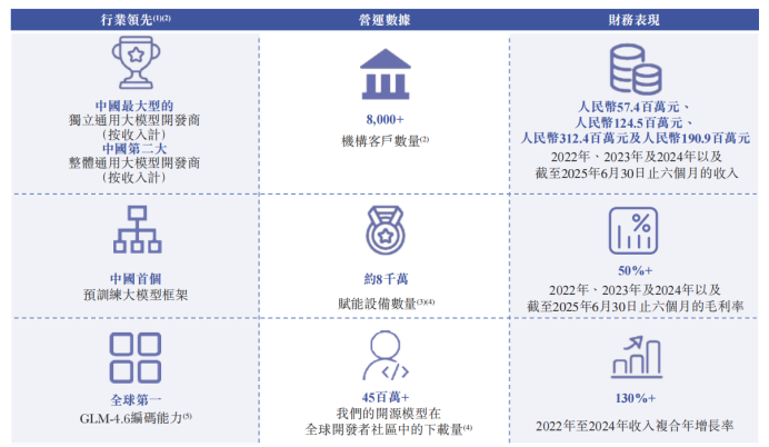 从财务数据来看,智谱的收入增长势头显著。智谱港股招股书显示,2022年至2024年,公司实现营业收入5740万元、1.245亿元和3.124亿元,复合年增长率超过130%;2025年上半年公司实现营业收入1.91亿元,同比增长325%。